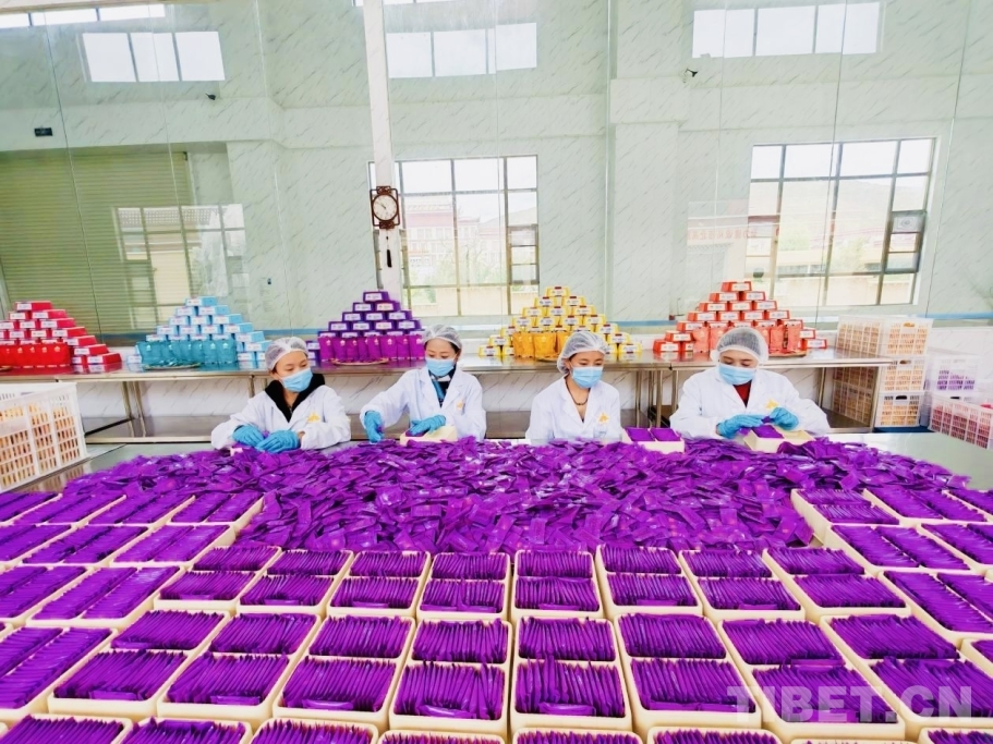 圖為工作人員正在打包青稞餅干