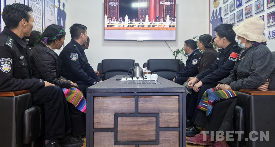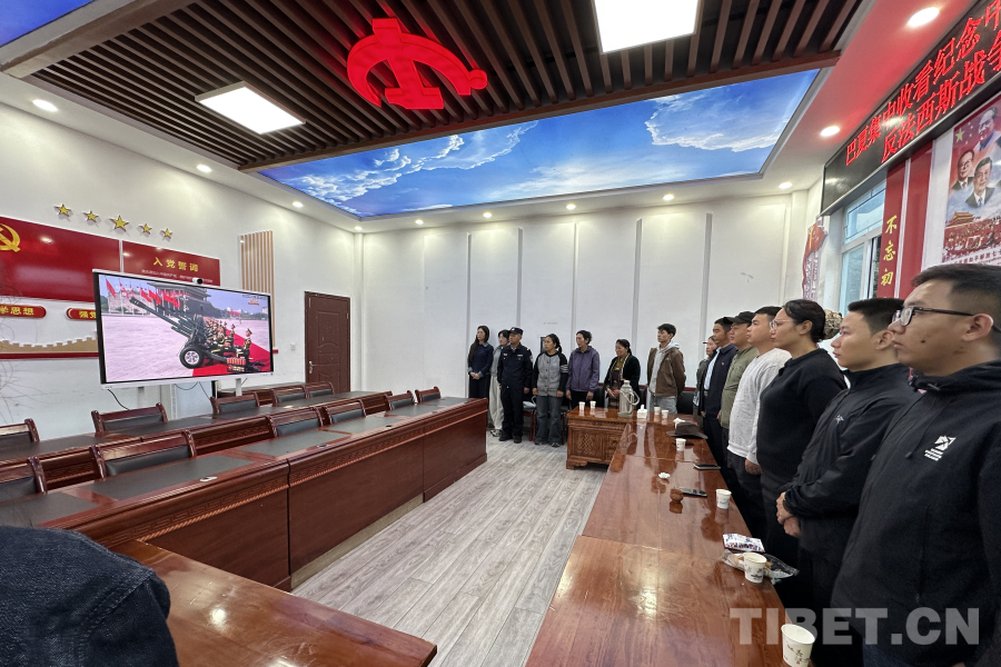圖為日喀則邊境管理支隊仲巴邊境管理大隊帕羊邊境派出所與駐地人民政府聯(lián)合觀看紀(jì)念中國人民抗日戰(zhàn)爭暨世界反法西斯戰(zhàn)爭勝利80周年大會 攝影:次仁旺堆