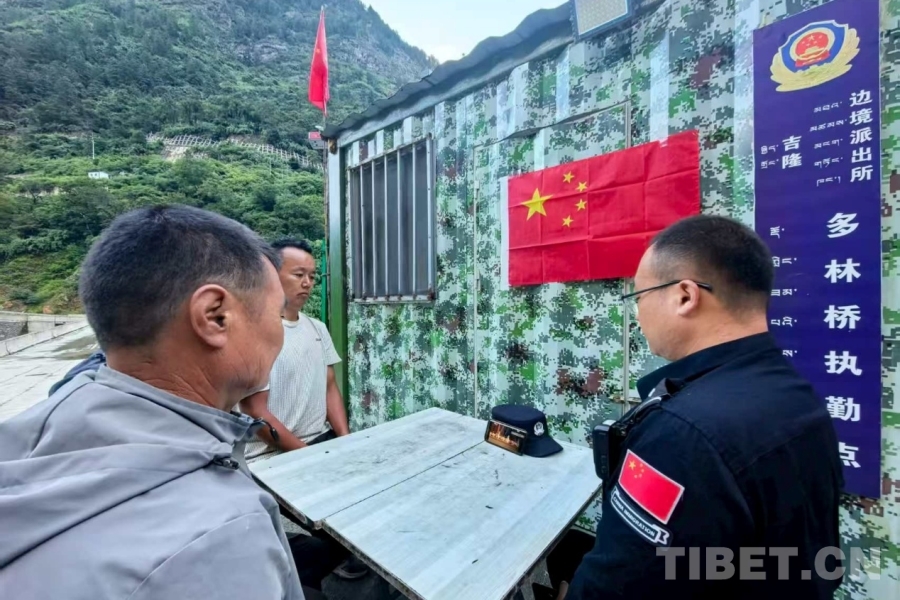 圖為日喀則邊境管理支隊吉隆邊境管理大隊吉隆邊境派出所多林橋執(zhí)勤點組織民警、護(hù)邊員和輔警觀看紀(jì)念中國人民抗日戰(zhàn)爭暨世界反法西斯戰(zhàn)爭勝利80周年大會 攝影:季韶龍