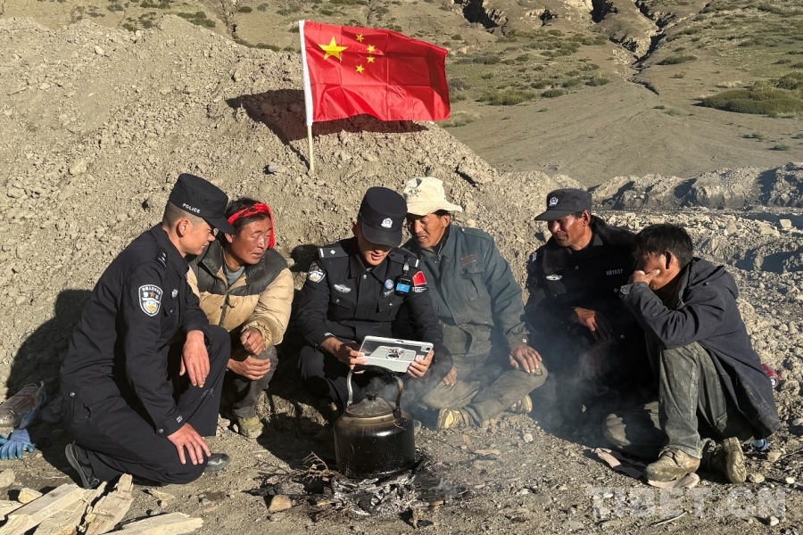 圖為日喀則邊境管理支隊薩嘎邊境管理大隊昌果邊境派出所民警在海拔5300米的拉孜加久山口巡邏間隙與護(hù)邊員共同收看紀(jì)念中國人民抗日戰(zhàn)爭暨世界反法西斯戰(zhàn)爭勝利80周年大會 攝影:旦增扎巴