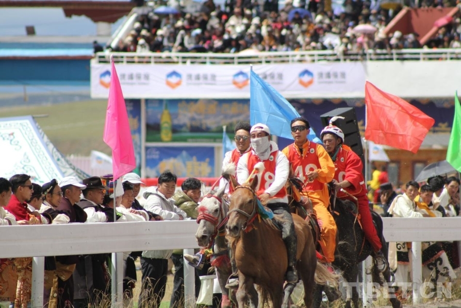 圖為9月5日,一年一度的那曲恰青賽馬節(jié)上,騎手在比賽 攝影:趙釗
