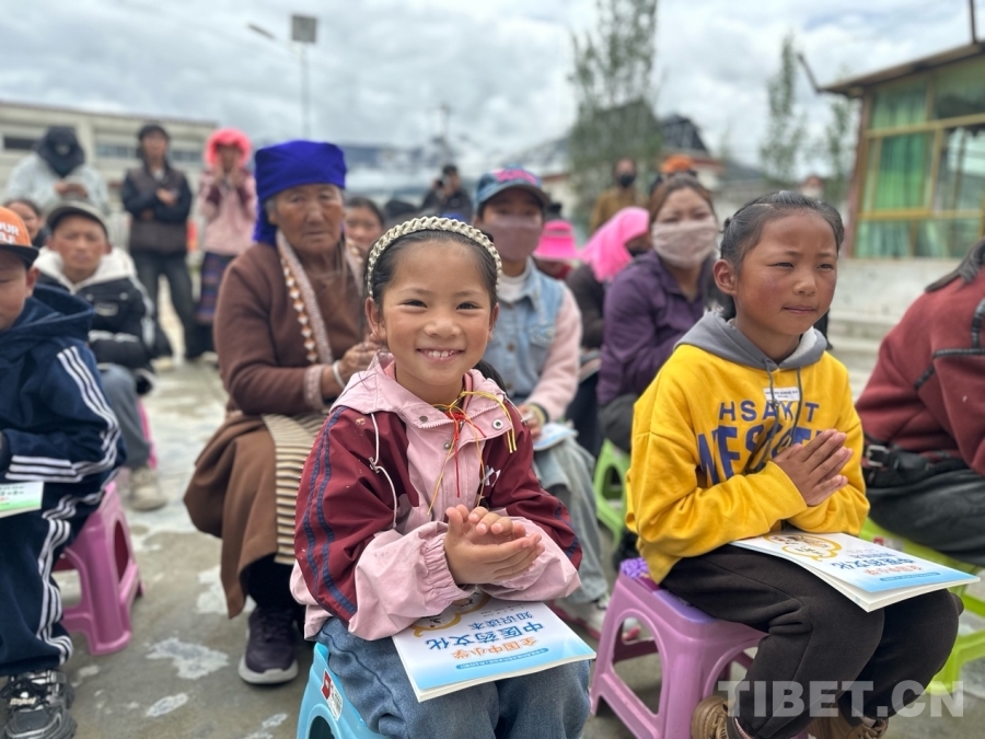 圖為旁多鄉(xiāng)寧波村兒童收到實踐團發(fā)放的中醫(yī)藥文化讀本