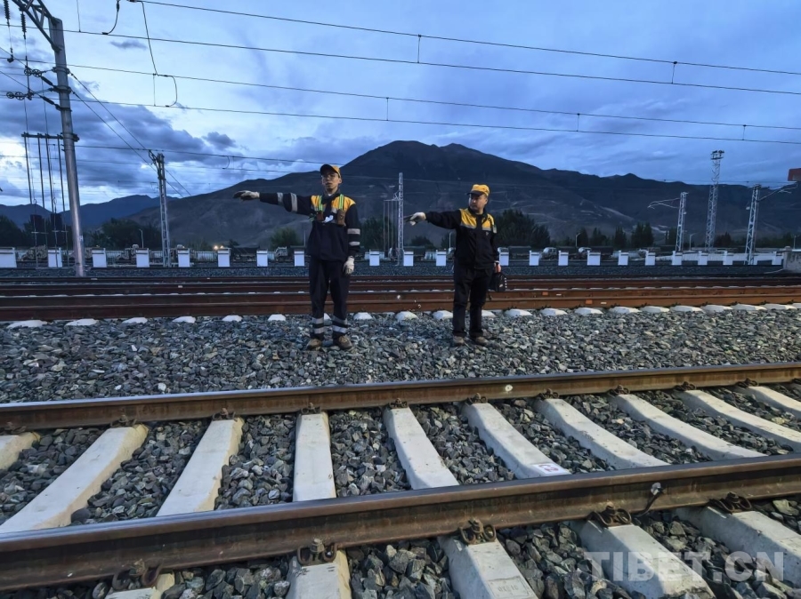 七點半,夜色沉沉,流動調車組一行3人已經登上前往林芝方向的動車組列車,上車后他們沒有片刻松懈,調車長李雙華掏出了筆記本,開始復盤昨天的調車作業(yè),對身旁的連結員叮囑事項,“扒乘車輛要選擇好位置,檢查防溜措施和車輛狀態(tài)要再仔細一點。”作為一名有著13年黨齡的共產黨員,李雙華始終把“黨員就是一面旗幟”作為自己的作業(yè)標準。在拉林鐵路這條雨水頻繁、環(huán)境復雜的線路上,他帶頭沖鋒在前,無論風雨交加還是深夜寒涼,他總是第一個進入作業(yè)狀態(tài),最后一個結束作業(yè)。雨夜里,他穿著濕透的雨衣,腳步堅定地穿梭在股道間,手電光劃破黑暗,仔細檢查每一處防溜、每一節(jié)車鉤。拉薩車站的每一位調車員,都在平凡崗位上默默堅守,在關鍵時刻挺身而出,點亮了拉林鐵路線上的責任之光。
