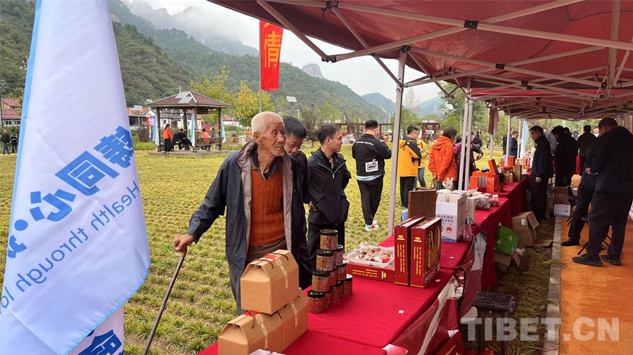 圖為游客了解展銷的當(dāng)?shù)靥厣a(chǎn)品 攝影:王帥