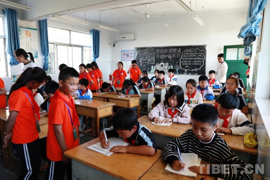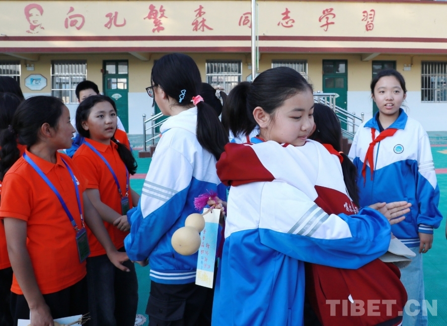 中國西藏網(wǎng)訊 9月25日,西藏自治區(qū)阿里噶爾縣孔繁森小學(xué)的師生來到位于山東省聊城市的堂邑鎮(zhèn)中心小學(xué)開展聯(lián)誼活動。堂邑鎮(zhèn)是孔繁森同志的故鄉(xiāng)。兩所學(xué)校的孩子們一起瞻仰孔繁森同志事跡、一起做游戲、同唱中國少年先鋒隊隊歌、共繪迎國慶主題畫卷……結(jié)下了深厚的情誼。