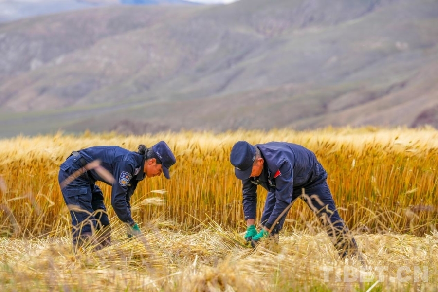 中國西藏網(wǎng)訊 金秋時節(jié),青稞飄香。9月底,西藏日喀則邊境管理支隊涅如麥邊境派出所民警們深入田間,在廣袤的田野上,與農牧民一同俯身勞作,揮鐮收割,搶收青稞。金黃麥浪中,那一抹抹“警察藍”與辛勤的群眾構成了一幅警民情深、秋收喜悅的動人畫卷。(中國西藏網(wǎng) 通訊員/葉軼 記者/趙振宇)