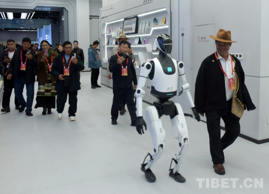 圖為西藏林芝波密縣基層干部在與智能機器人互動 攝影:唐召明