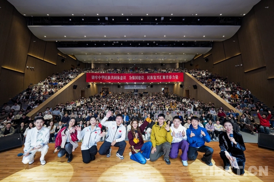 文化展演環(huán)節(jié)同樣精彩紛呈,為整場活動(dòng)注入了濃郁的民族風(fēng)情。來自西藏那曲、阿里地區(qū)的演員們身著特色服飾登場,用極具感染力的藏族歌舞點(diǎn)燃全場。濃郁的民俗風(fēng)情隨著表演鋪展開來,將現(xiàn)場氛圍一次次推向高潮,也讓在場師生沉浸式走進(jìn)西藏非遺文化,真切感受到西藏藝術(shù)的獨(dú)特魅力。