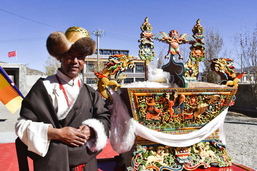 中國西藏網(wǎng)訊 “西藏的雕刻技藝發(fā)展歷史可以追溯到吐蕃時(shí)期(公元七世紀(jì)),作為一門純手工的雕刻技藝,當(dāng)時(shí)雕刻產(chǎn)品生產(chǎn)量較少、價(jià)格昂貴,制作過程復(fù)雜而精密,雕刻出來的佛像和鐫刻的文字以其質(zhì)量和獨(dú)具特色的風(fēng)格延續(xù)成為了當(dāng)時(shí)富貴家庭的珍藏品,讓雕刻技藝也成為了西藏老百姓心目中很崇拜的一門技術(shù)?!?1月10日,在西藏自治區(qū)日喀則市白朗縣瑪鄉(xiāng)土古村,記者見到了土古喜格傳統(tǒng)雕刻技藝的第四代傳承人果杰。