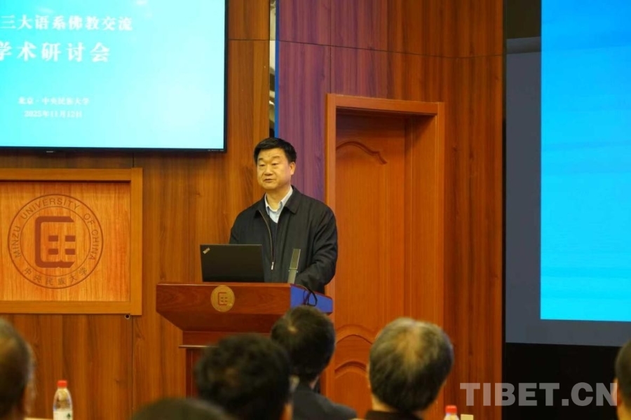 中國(guó)西藏網(wǎng)訊 11月12日,由中央民族大學(xué)哲學(xué)與宗教學(xué)學(xué)院、中國(guó)社會(huì)科學(xué)院世界宗教研究所聯(lián)合主辦的“中國(guó)三大語(yǔ)系佛教交流學(xué)術(shù)研討會(huì)”在北京召開(kāi)。本次會(huì)議以“對(duì)話交融·互鑒共生”為核心宗旨,聚焦?jié)h語(yǔ)、藏語(yǔ)、巴利語(yǔ)三大語(yǔ)系佛教傳承演變的歷史進(jìn)程、內(nèi)在關(guān)聯(lián)、主要特點(diǎn)和當(dāng)下?tīng)顩r,為推動(dòng)我國(guó)佛教中國(guó)化理論研究、鑄牢中華民族共同體意識(shí)提供學(xué)術(shù)支撐。