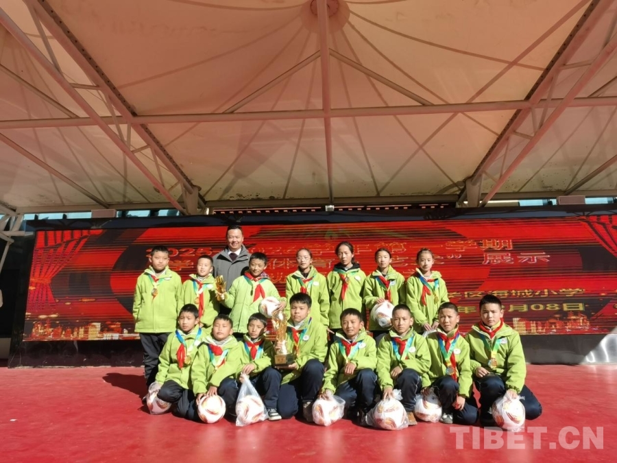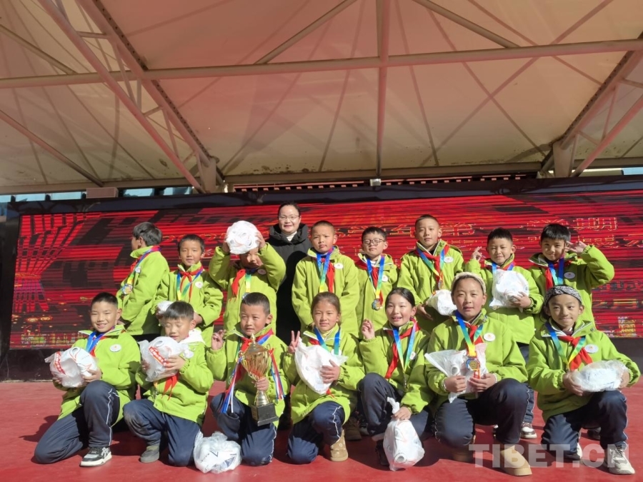 圖為拉薩市城關(guān)區(qū)教育局副局長、黨組成員多吉扎西為獲獎(jiǎng)隊(duì)伍頒獎(jiǎng) 攝影:馬靜
