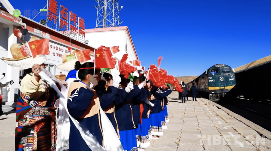 圖為首批旅客在雁石坪乘降所乘車遠(yuǎn)行 圖源:那曲融媒