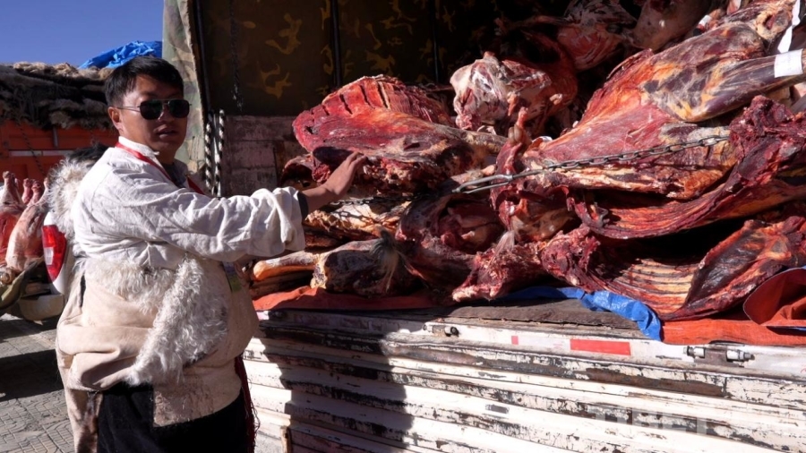 中國西藏網(wǎng)訊 12月15日上午10時(shí)許,西藏自治區(qū)那曲市色尼區(qū)物流園區(qū)農(nóng)貿(mào)市場內(nèi)人頭攢動。牧民們正忙碌地從貨車上卸下各類畜牧產(chǎn)品,為即將開幕的那曲市第十八屆畜產(chǎn)品展銷會做最后準(zhǔn)備。