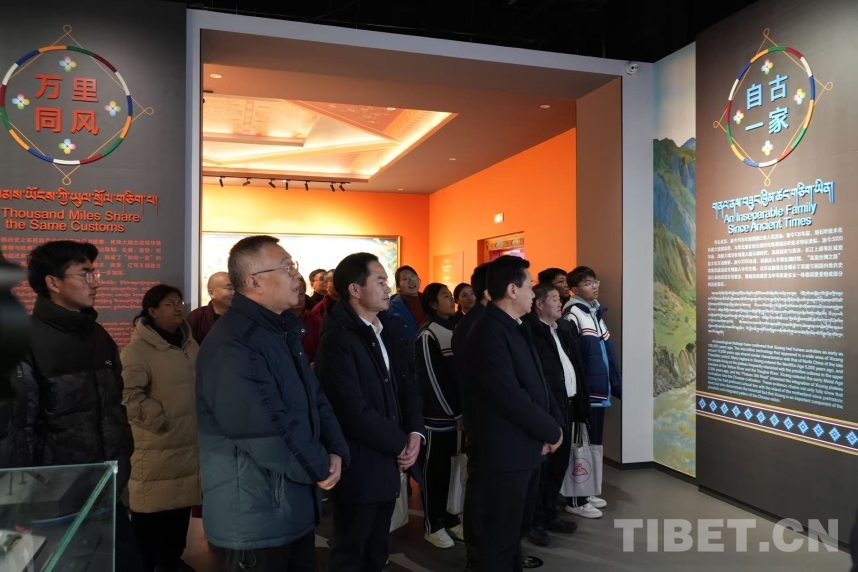 鄭堆在致辭中指出,西藏自古以來就是中國不可分割的一部分,一系列遺址、文物、檔案、文獻串聯(lián)起的歷史證據(jù)鏈,確鑿印證西藏與祖國同源同流、血脈相連,充分證明了中華民族共同體的形成和發(fā)展是人心所向、大勢所趨、歷史必然。中國藏學研究中心作為中國藏學研究的國家隊,自成立以來始終堅持“為維護祖國統(tǒng)一,加強民族團結(jié)服務(wù);為西藏和四省涉藏州縣發(fā)展穩(wěn)定服務(wù)”的宗旨,圍繞西藏的歷史法律地位、西藏地方與祖國關(guān)系史、歷代中央政府治藏政策等進行了全面、深入的研究,為中華民族發(fā)展史研究夯實了堅實的基礎(chǔ)。藏研中心集全國藏學研究之力,先后完成了《西藏通史》和《西藏文化史》等重大項目,分別以八卷的體量、上千萬字的篇幅系統(tǒng)論證了西藏自古以來是中國不可分割的一部分,西藏文化是中華文化不可分割的有機組成部分。同時,扎實推動了《西藏早期文明史研究》《元以來西藏地方與中央政府關(guān)系研究》等重點課題,整理出版了《元以來西藏地方與中央政府關(guān)系檔案史料匯編》《中國第二歷史檔案館所存西藏和藏事檔案匯編》《中華大典·藏文卷》等一系列檔案文獻和史籍著作,為系統(tǒng)梳理西藏與其他民族和地區(qū)交往交流交融的歷史,推進中華民族發(fā)展史研究夯實了扎實的史料基礎(chǔ),也使今天的展覽擁有了雄厚的研究基礎(chǔ)。從自在到自覺,中華民族從千萬年的榮辱興衰中攜手走來;從“社稷如一”到“書寫美麗西藏新篇章”,西藏的命運始終與中華民族大家庭緊密相連。歷史鑄就的共同體,充分彰顯了中華民族國土不可分、國家不可亂、民族不可散、文明不可斷的共同信念。新時代,雪域兒女堅信,在中華民族強國建設(shè)的新征程上,中華民族共同體必然會在我們的共同奮斗中愈發(fā)牢固。