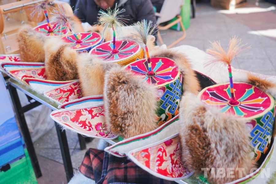 圖為展銷會擺放的那曲牧區(qū)藏帽