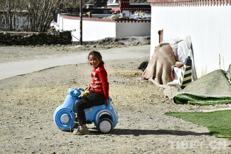 圖為定日縣長(zhǎng)所鄉(xiāng)古榮村內(nèi)在自家新居前快樂玩耍的小女孩。攝影:趙振宇