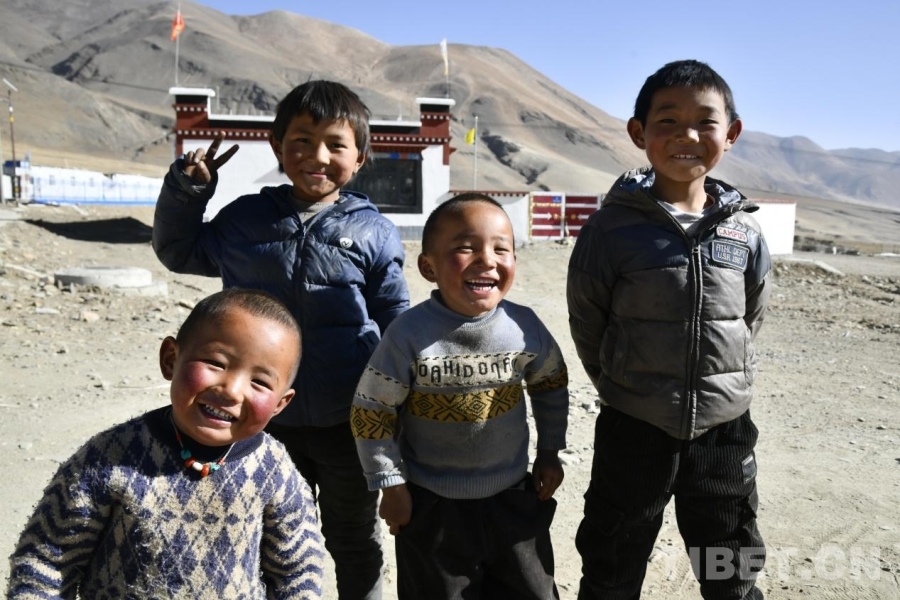 圖為定日縣長(zhǎng)所鄉(xiāng)古榮村的小朋友們?cè)谛戮忧翱鞓泛嫌啊z影:趙振宇