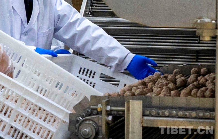 圖為生產(chǎn)線上的牦牛肉丸