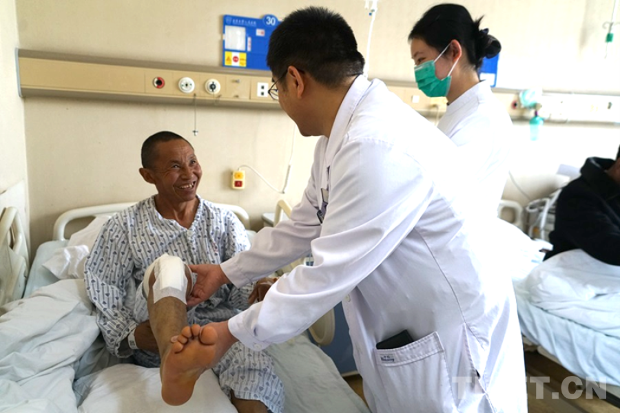 作為最早一批跟隨林劍浩赴藏開展大骨節(jié)病篩查治療工作的醫(yī)務(wù)人員之一,李虎對記者說,“對于西藏的大骨節(jié)病患者,接觸了以后,心里就會始終放不下。多年來,當?shù)卣扇Q糧、改水、藥物干預、易地搬遷、集中辦學等措施,有效控制了大骨節(jié)病在年輕人群中的蔓延。對于現(xiàn)有患者,國家和當?shù)卣矊嵤┝怂幬锇l(fā)放、經(jīng)濟補貼等多種幫扶策略,以幫助他們減輕生活的壓力。但是始終覺得他們的笑容中有一分苦澀,這是由于疾病本身帶來的身體上的痛苦?!睋?jù)了解,符合手術(shù)條件的患者在經(jīng)過手術(shù)后,能擺脫關(guān)節(jié)疼痛,可以自由行走,生活自理,甚至可以做農(nóng)活、外出務(wù)工。“這種變化讓患者和家屬體會到一種發(fā)自內(nèi)心的莫大的幸福,也讓我們感受到他們對黨和政府、對醫(yī)務(wù)人員的感激和對國家的熱愛。”
