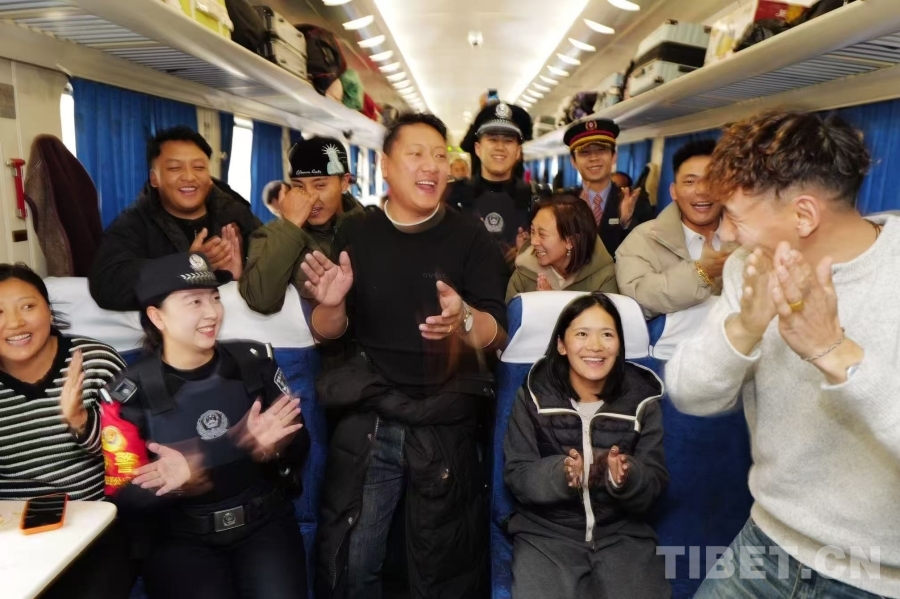 圖為列車車廂內(nèi),乘警與返鄉(xiāng)學(xué)子載歌載舞,悠揚的歌聲在“天路”之上回蕩,讓返鄉(xiāng)歸途暖意融融