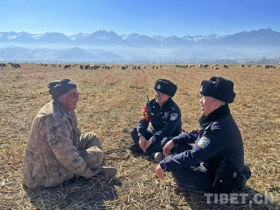 圖為祁連山腳下門源車站,青藏鐵警向當(dāng)?shù)厝罕娒鎸γ嫘v鐵路安全知識,共筑平安防線
