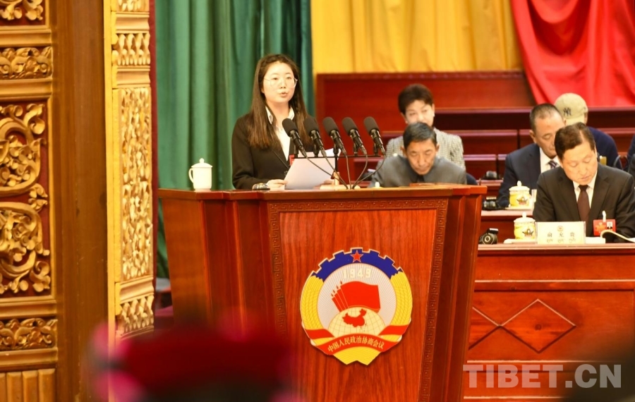 圖為政協(xié)委員蔣妙妙在政協(xié)第十二屆西藏自治區(qū)委員會第四次會議中作大會發(fā)言 攝影:趙振宇
