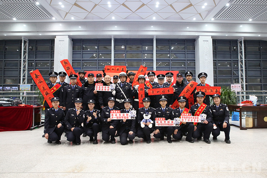 圖為春運(yùn)期間,青藏鐵警在格爾木站候車廳開展情暖回家路活動(dòng)