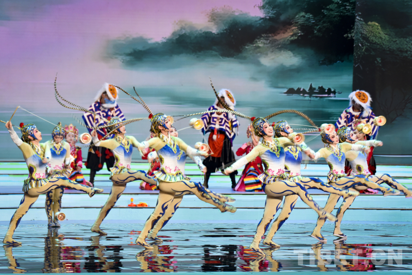 圖為2026拉薩藏晚節(jié)目《緣起 旋舞》將傳統(tǒng)藏戲與中國雜技團(tuán)表演的集體空竹完美融合在一起 攝影:趙振宇