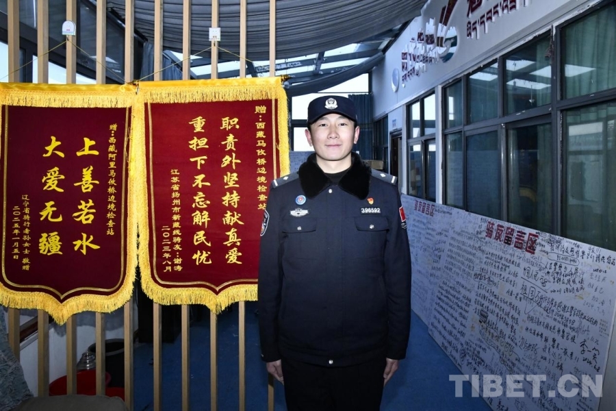 圖為馬攸橋邊境檢查站民警旦增平措 攝影:趙振宇