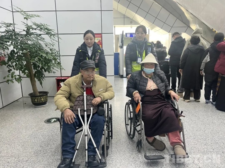 “邦錦梅朵”班組成員陪護(hù)行動不便旅客