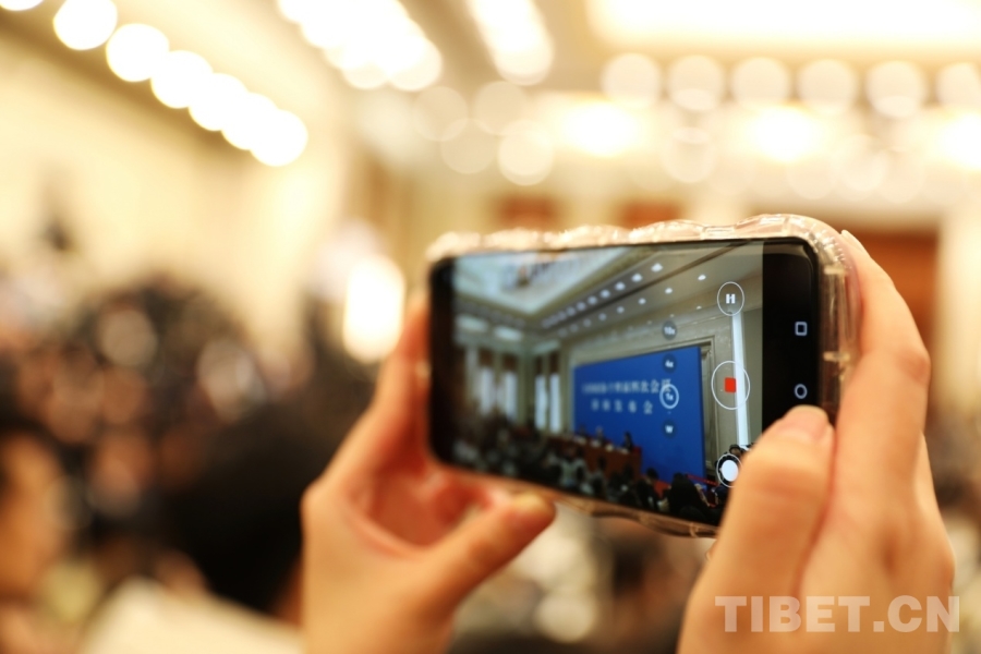 3月3日下午,全國政協(xié)十四屆四次會議新聞發(fā)布會現(xiàn)場,記者們使用即拍即傳設(shè)備與手機(jī)及時發(fā)布信息。攝影:劉莉