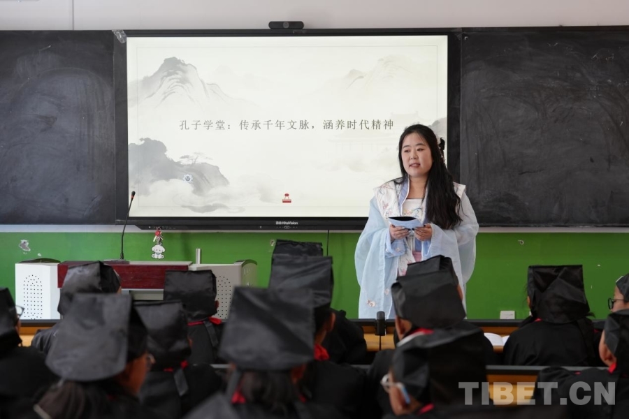 有一次,殷靚靚穿著漢服走進(jìn)課堂,飄逸的衣袂瞬間吸引力所有孩子的目光??粗⒆觽儩M眼的好奇,她和援藏團(tuán)隊(duì)的老師們萌生了新想法——依托山東儒家文化發(fā)源地的底蘊(yùn),在學(xué)校開設(shè)中華傳統(tǒng)文化興趣班,建起“孔子學(xué)堂”。在這里,孩子們讀經(jīng)典、學(xué)禮儀,還和濟(jì)南的小伙伴同步開展傳統(tǒng)文化活動(dòng),讓孩子們對(duì)千里之外的山東,多了一份更深的親近與向往。