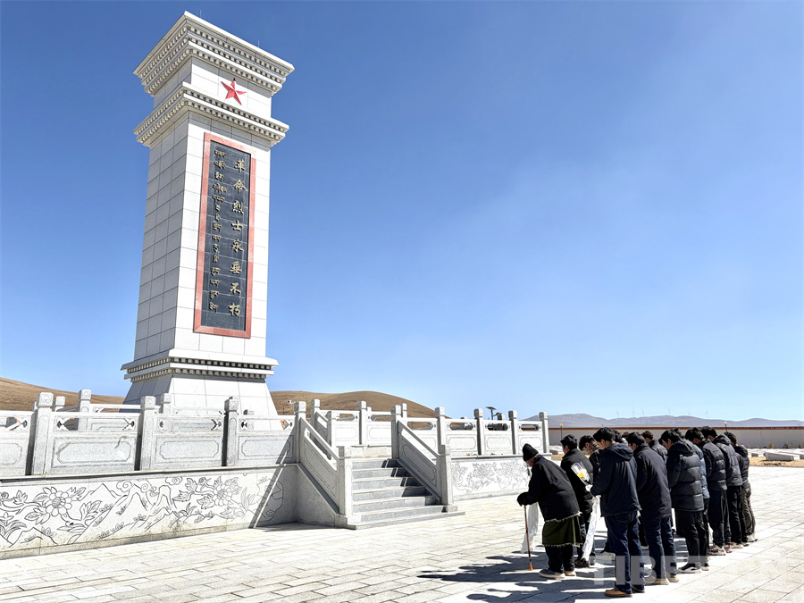 上午10時(shí)許,紀(jì)念活動(dòng)正式開始。在革命烈士紀(jì)念碑前,全體人員整齊列隊(duì)、神情肅穆。大家手持鮮花和潔白的哈達(dá),面向革命烈士紀(jì)念碑深深三鞠躬,隨后向?yàn)槲鞑睾推浇夥?、民主改革和建設(shè)發(fā)展英勇獻(xiàn)身的革命先烈默哀三分鐘,寄托對(duì)英烈的無限緬懷與哀思。