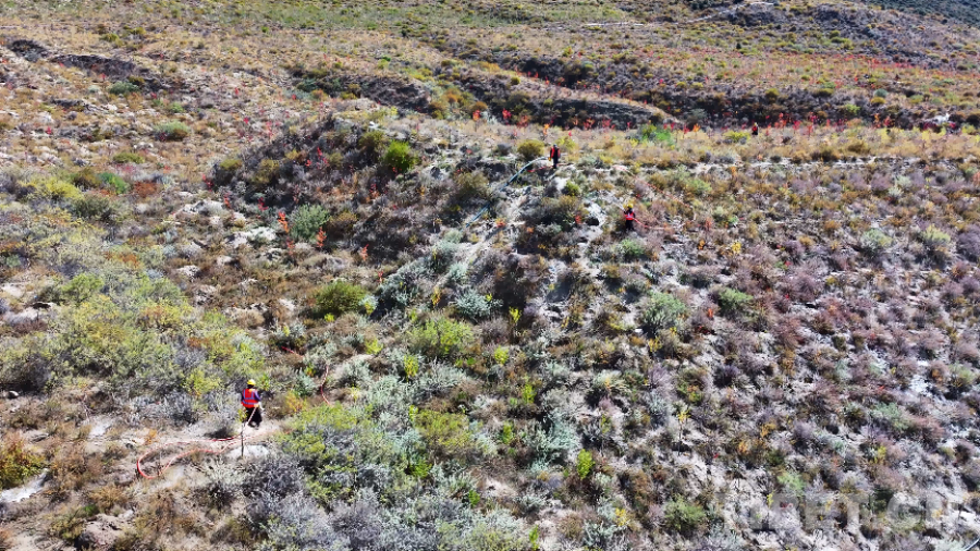 巴宜區(qū)附近山坡上,工作人員正細心澆水、打理生態(tài)區(qū)域,用心守護“桃花城”的每一抹新綠。