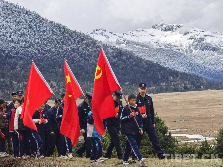 南伊邊境派出所民警與小學生重走巡邊路 攝影:徐子心