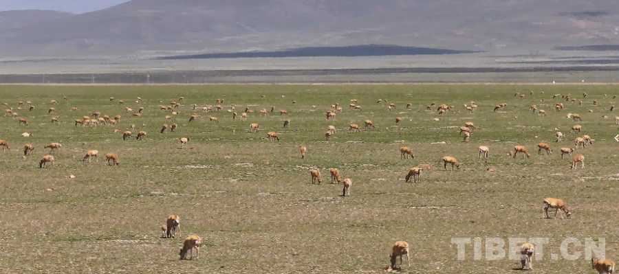 西藏那曲市申扎縣境內(nèi)棲息的藏羚羊群 申扎縣融媒體中心供圖