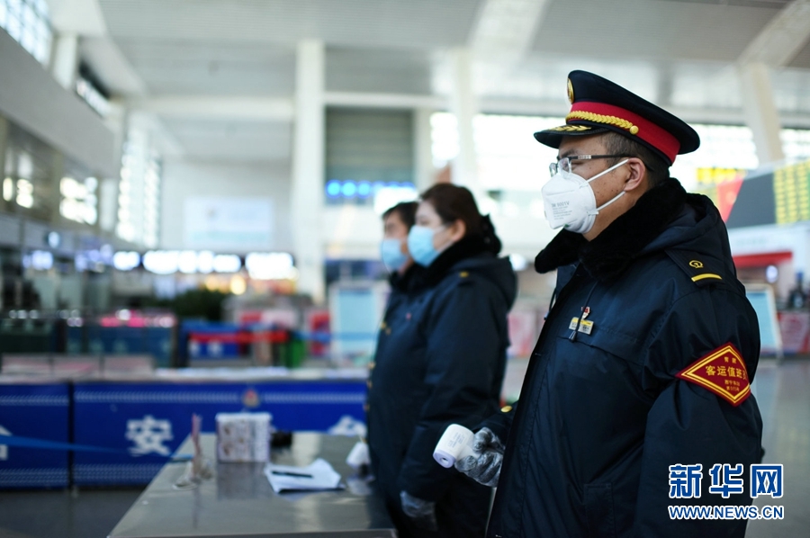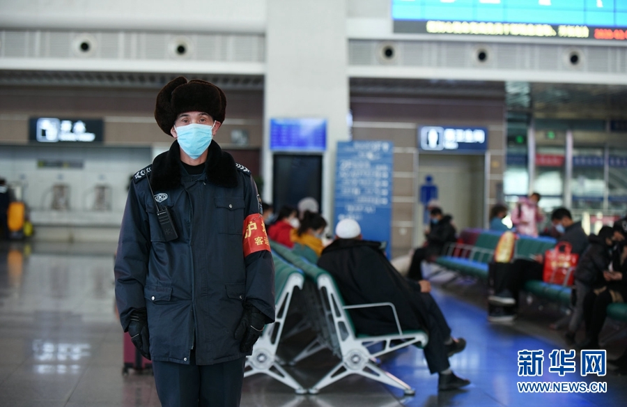 圖為西寧站內(nèi)正在維護秩序的保安。新華網(wǎng) 李俊 攝