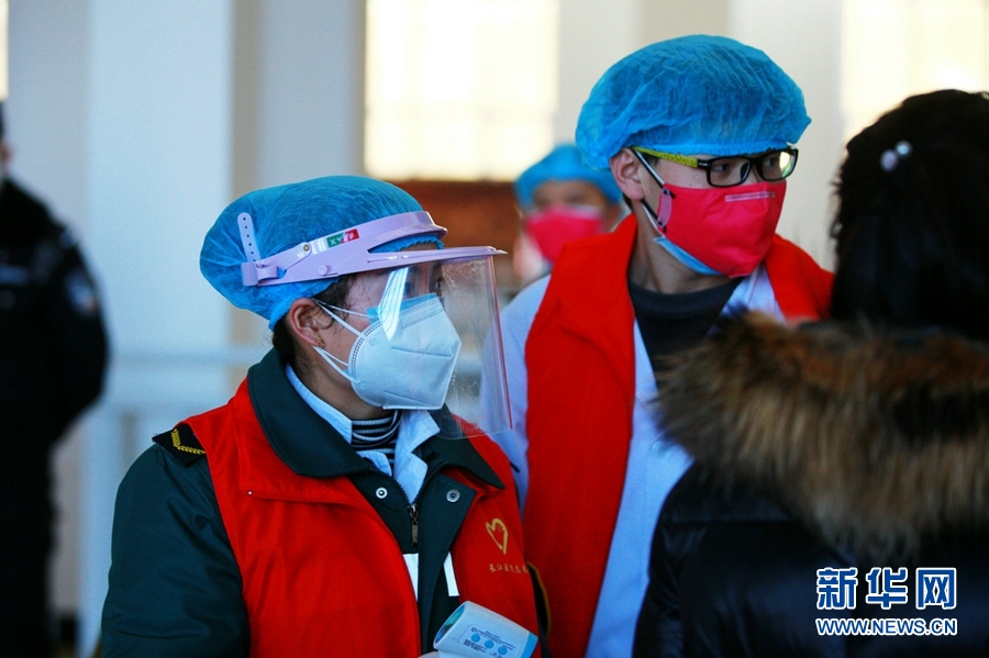德令哈車站工作人員為進站旅客測量體溫。新華網(wǎng) 汪要強 攝