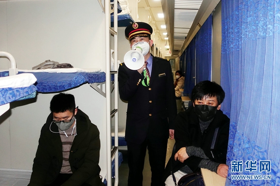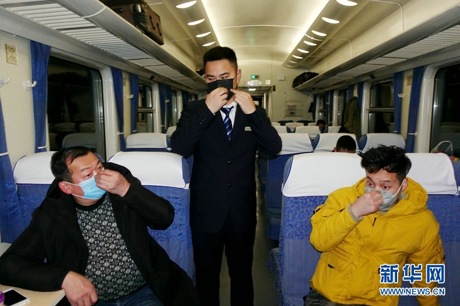 西寧客運段成都三組乘務員為旅客宣傳防疫知識。新華網(wǎng) 郝寶君 攝