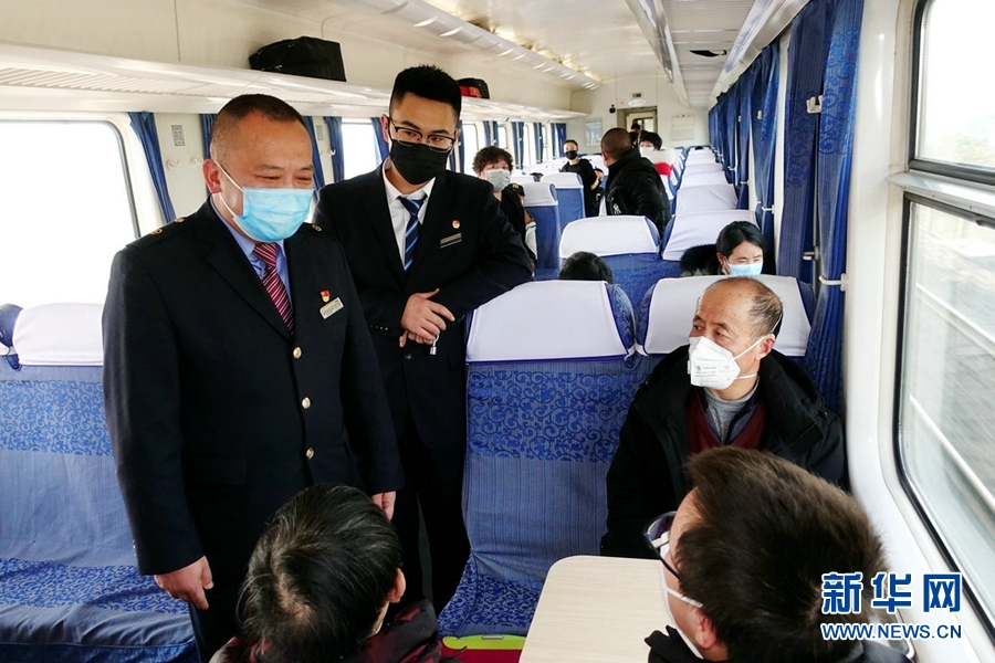西寧客運段職工問詢旅客身體情況。新華網(wǎng) 郝寶君 攝