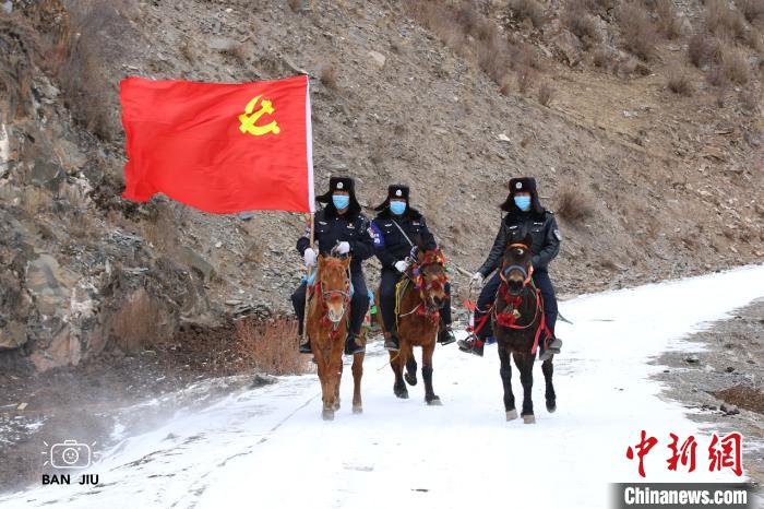 自疫情防疫阻擊戰(zhàn)打響以來(lái),玉樹(shù)市公安局安沖鄉(xiāng)派出所創(chuàng)新工作方法,結(jié)合信息不暢、交通不便的實(shí)際,以馬為交通工具,發(fā)揮著馬背疫情巡邏隊(duì)、宣傳隊(duì)、防控隊(duì)的作用,穿梭在偏遠(yuǎn)牧區(qū),隊(duì)員們騎著馬手持便攜式喇叭,高舉鮮紅的黨旗,用簡(jiǎn)單易懂,接地氣的語(yǔ)言向轄區(qū)牧民群眾宣傳疫情防控知識(shí)。