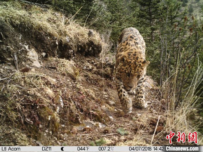 資料圖為紅外相機(jī)監(jiān)測(cè)到的金錢豹。山水自然保護(hù)中心供圖