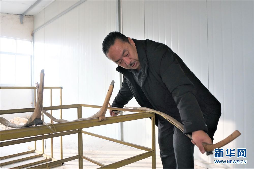 奧松多杰檢查制作完成的牛角弓成品(1月16日攝)。新華社記者 李占軼 攝