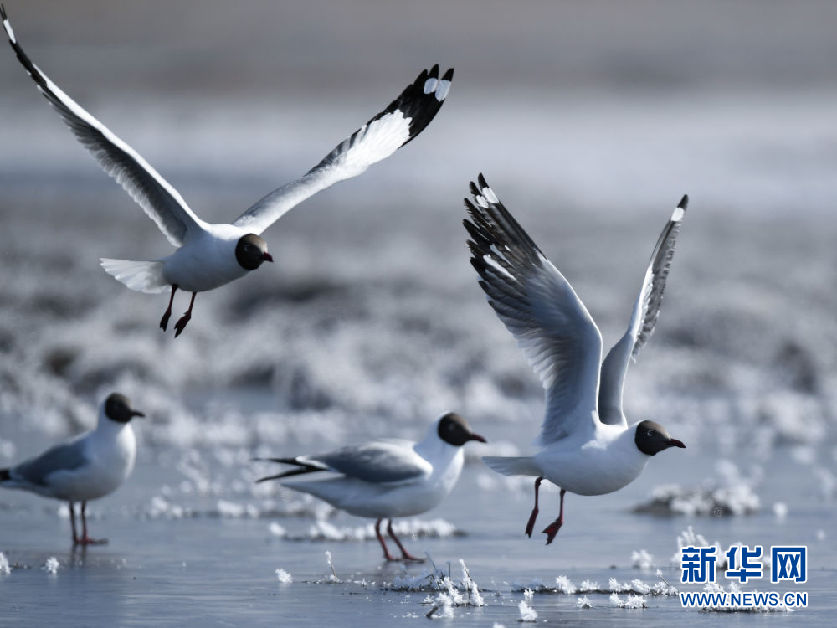 隨著氣溫轉(zhuǎn)暖,大批棕頭鷗陸續(xù)抵達(dá)青海湖,它們?cè)诤呮覒颉⒁捠?,成為春日里一道靚麗的風(fēng)景。