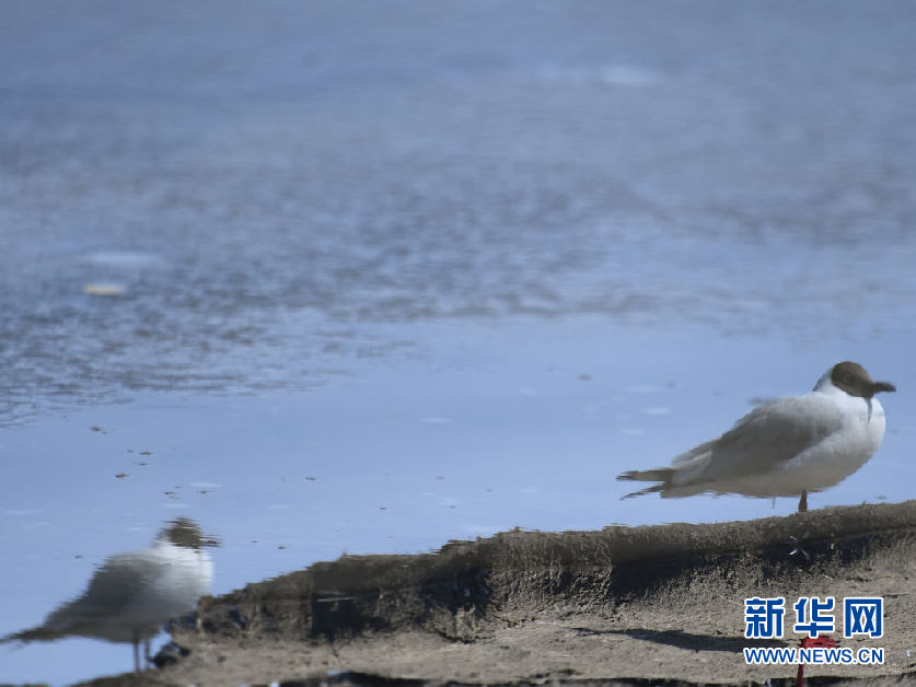 這是4月8日在青海省海北藏族自治州剛察縣青海湖畔拍攝的棕頭鷗。新華社發(fā)(潘彬彬 攝)
