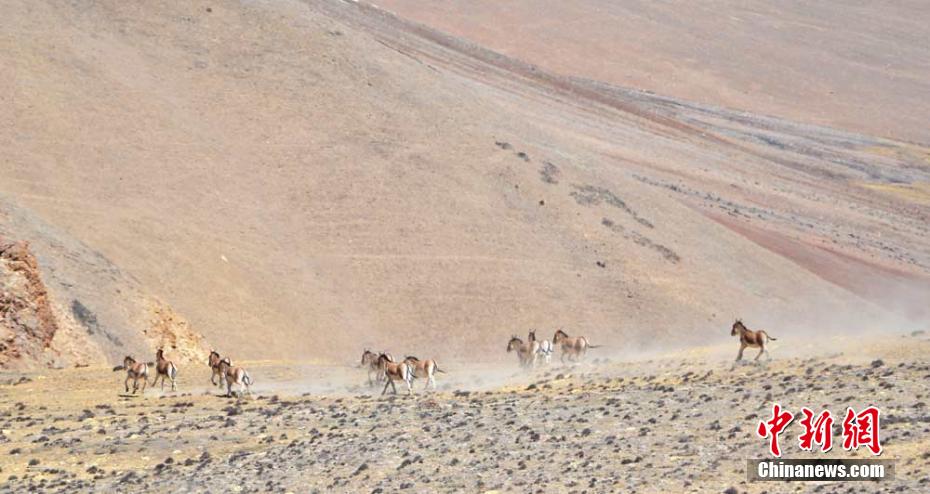 4月中旬,在甘肅肅南境內(nèi)祁連山草原上近距離拍攝到奔跑的藏野驢。 武雪峰 攝