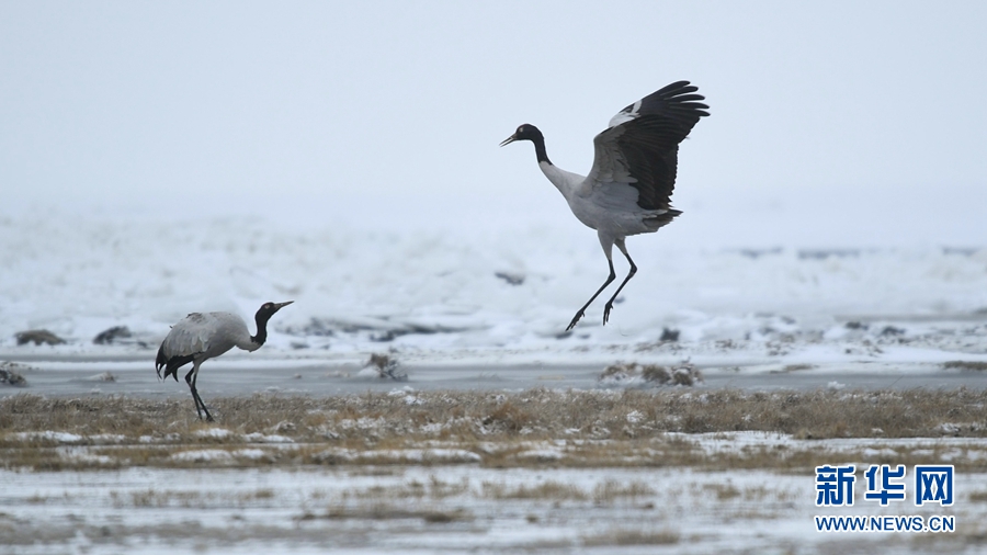 4月17日,受冷空氣影響,青海省海北藏族自治州剛察縣迎來(lái)一場(chǎng)春雪,兩只雪域“精靈”黑頸鶴在青海湖仙女灣景區(qū)“與雪共舞”,上演青海湖畔最美“雪中情”。[詳細(xì)] -