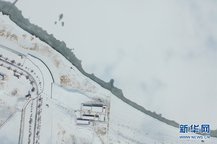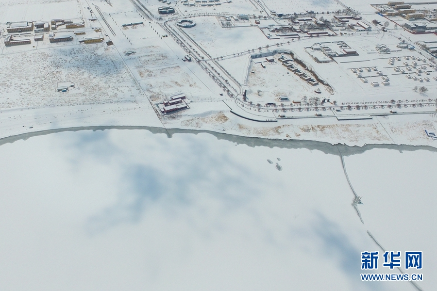 一場(chǎng)春雪,為青海湖披上了潔白的外衣(4月7日攝)。新華網(wǎng) 潘彬彬 攝