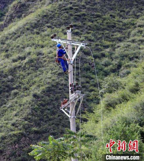 在丹巴與小金縣交界處的太平橋鄉(xiāng)黑風(fēng)頂村電力恢復(fù)施工現(xiàn)場,35名電力搶險人員正忙著架設(shè)輸電線路,該段新架設(shè)的10千伏輸電線路全長1.5公里,共7跨電桿,是此次電力恢復(fù)最關(guān)鍵的工程。山洪泥石流災(zāi)害造成丹巴縣城至半扇門輸電線路嚴(yán)重損毀,短時間內(nèi)難以恢復(fù),經(jīng)過協(xié)調(diào),指揮部決定從阿壩州小金縣取得電源,以便及時解決半扇門、太平橋兩個鄉(xiāng)鎮(zhèn)老百姓的用電問題?!坝型謴?fù)堰塞湖以上26個行政村,兩個鄉(xiāng)鎮(zhèn)和四所學(xué)校,兩個衛(wèi)生院2500多戶萬余人的生產(chǎn)生活用電?!眹W(wǎng)丹巴縣供電公司搶險人員韓聲壽表示。