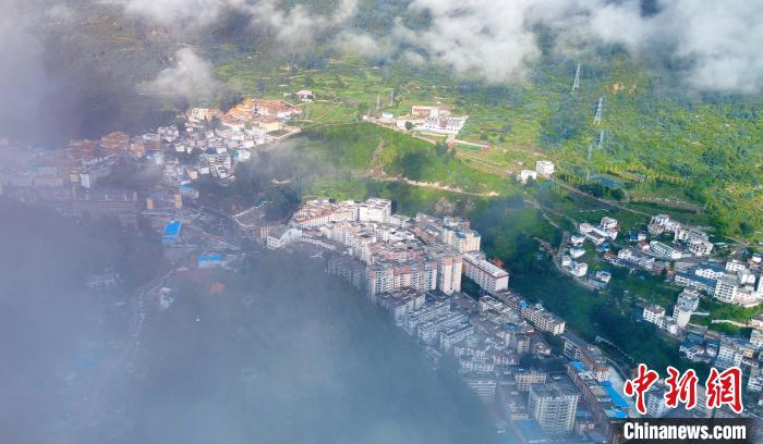 云霧下的康定城。 劉忠俊 攝